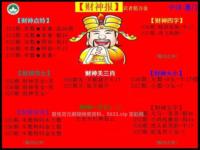 337期==精杀三肖=【虎羊兔】开:鸡09准